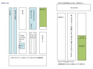 ・施肥:ズッキーニ、キュウリ、トマト、オクラエリア
